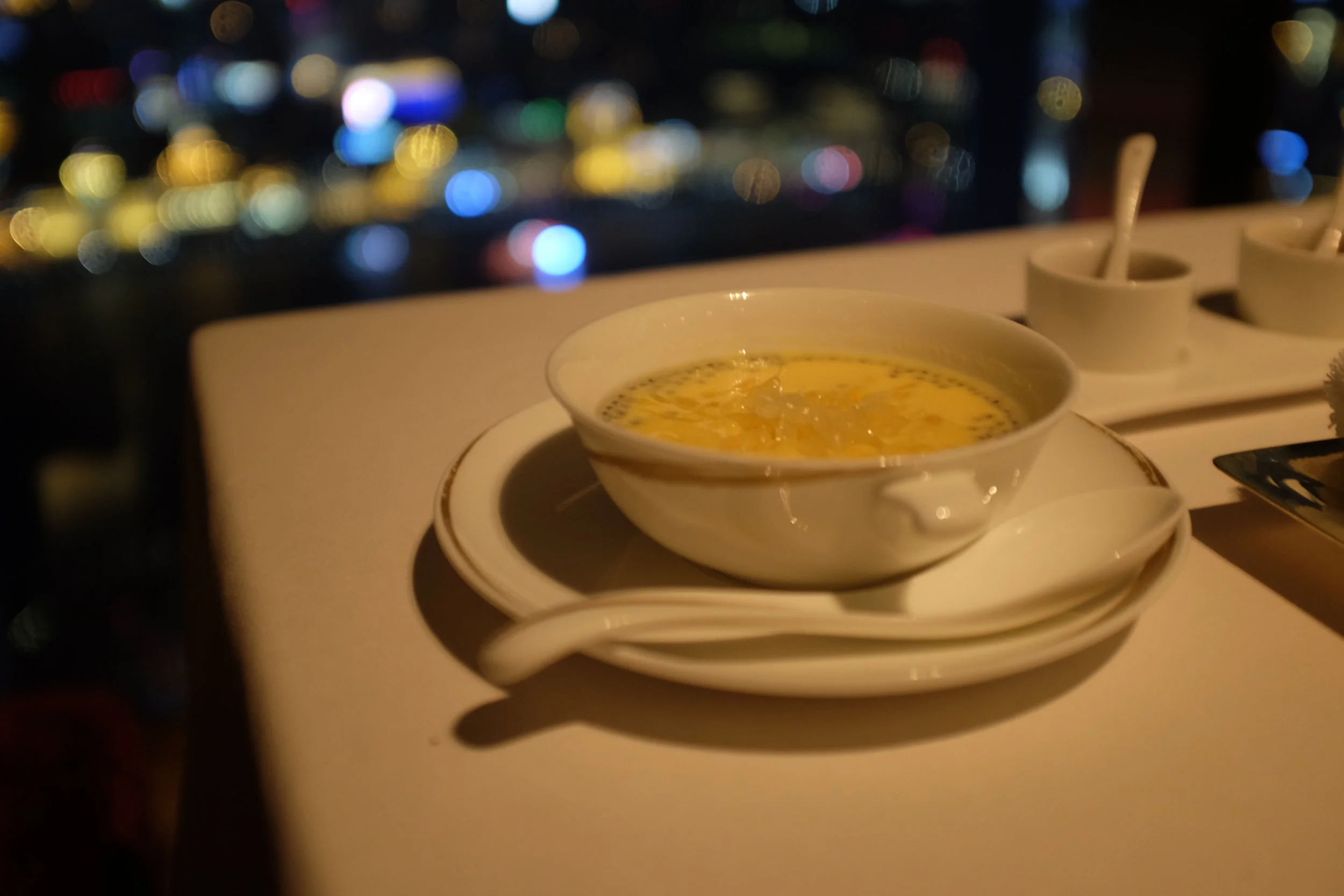 By the time this dessert came around, the sun was long gone and the city lights were shining bright.
