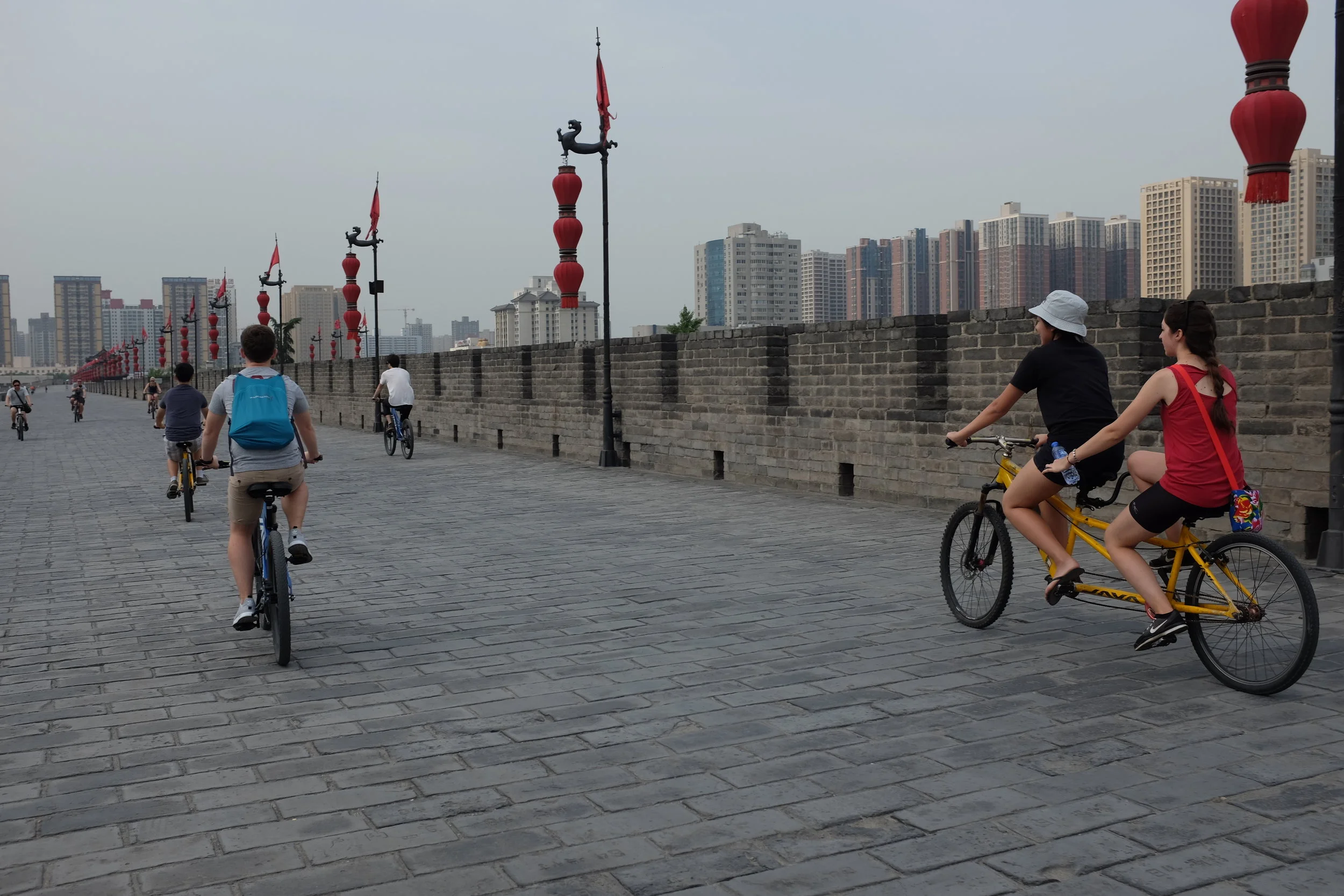 Xi'an's city wall is the most well-preserved city wall in all of China. Many Chinese cities had a wall surrounding the center to protect the citizens, especially the royal and wealthy, but the wall in Xi'an is one of the very few remaining that is still in-tact. We spent a couple hours riding our bikes all the way around the entire city, stopping at a few temples along the way. It's a great way to engage yourself with the surroundings, and biking on an ancient wall while passing modern buildings and advanced society is an interesting juxtaposition. There are bike rental spots all around the wall, but make sure you remember exactly which one you rented from because they all look similar (including the surroundings) and, well, let's just say we did not pay attention. It all worked out in the end, and the experience was one of my favorites. Pro-tip: do this bike ride on a weekend morning because the weather is bearable and there are a few spots where you can look down over weekend markets and observe the buzz from above, which is awesome.
